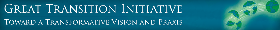 The Great Transition Initiative is an online forum of ideas and an international network for the critical exploration of concepts, strategies, and visions for a transition to a future of enriched lives, human solidarity, and a resilient biosphere.